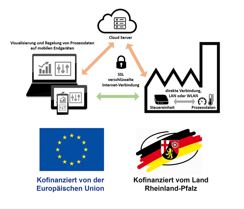 Für die Speicherung und Verarbeitung von Daten in der Cloud stehen skalierbare, ausfallsichere und kostengünstige Dienste verschiedener Cloud Provider zur Verfügung. Um den hohen Sicherheitsansprüchen der Industrie gerecht zu werden, werden die Daten bereits auf der Geräteebene verschlüsselt, über eine zusätzlich verschlüsselte Internetverbindung in die Cloud gesendet und dort verschlüsselt gespeichert. Die Entschlüsselung erfolgt erst lokal beim User (End-to-End Verschlüsselung).
